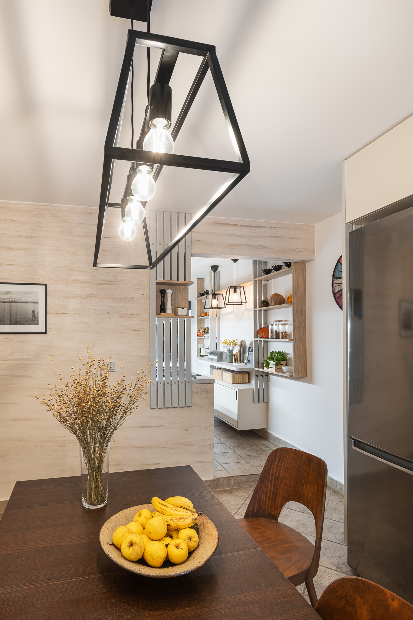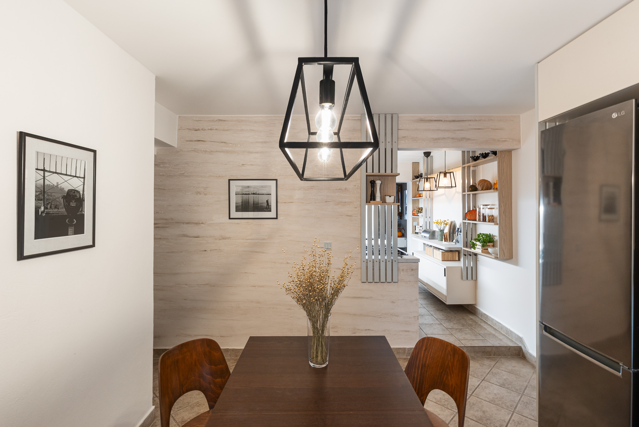 Původní tmavě šedá stěrka na stěně v jídelně se začala po dvaceti letech loupat a paní Ivana si koupila v Ikea nový černý kovový lustr. To byly impulsy vedoucí k rozhodnutí: jdeme do toho!