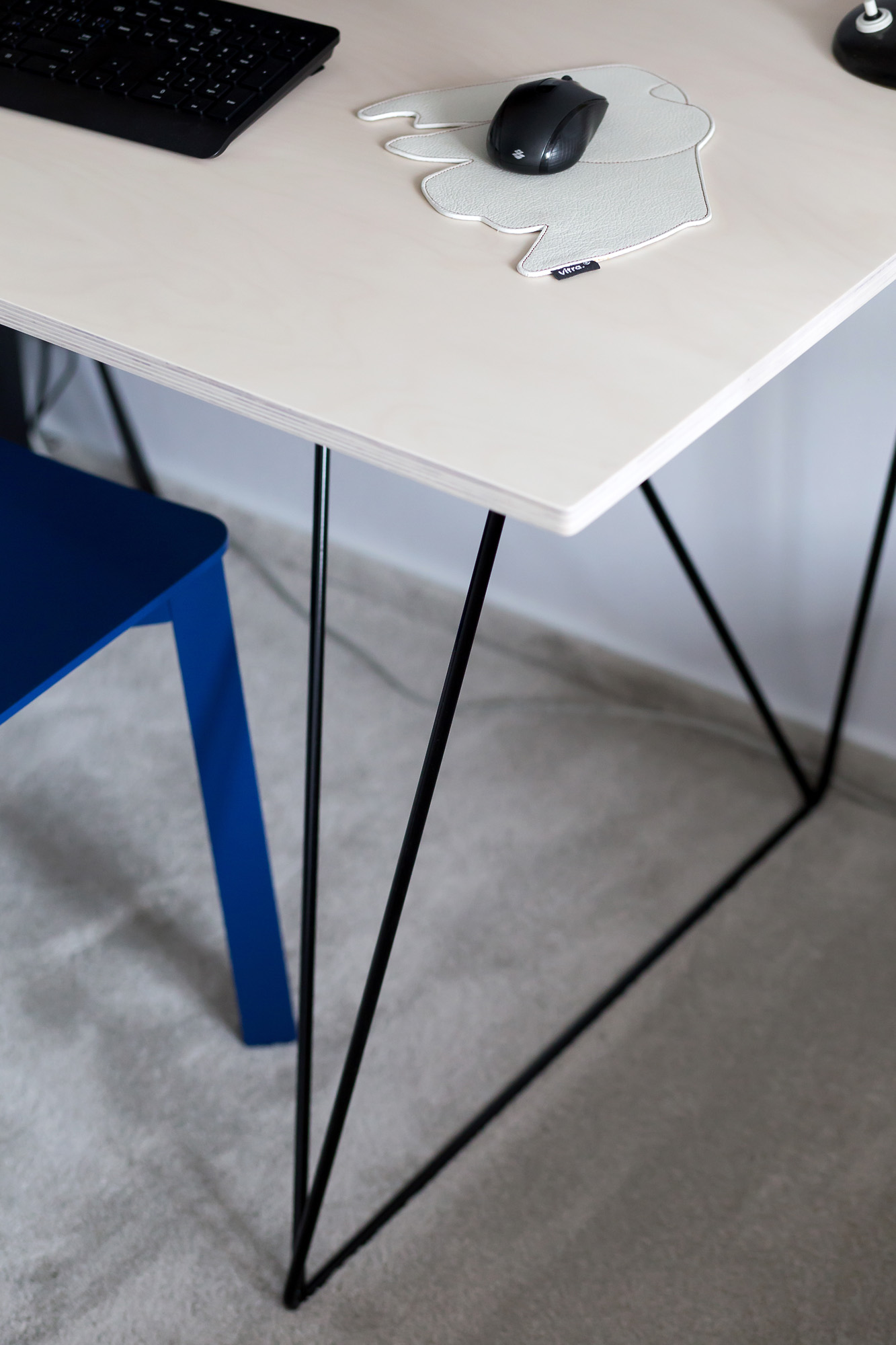A modrá židle Merano od TONu, která do interiéru přibyla právě dnes, doslova rozbíjí neutrální barevnost nábytku, výmalby v lomené bílé i světle šedého měkoučkého hotelového koberce. Doufám, že toto místo bude pro Báru to pravé inspirativní i klidné útočiště, a děkuji za báječnou spolupráci.