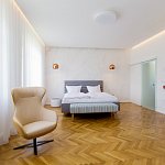 Jelikož je majitelka zároveň stavební inženýrkou, spolupracovaly jsme ruku v ruce. A to nejen co se týká stavebních úprav. Postupně jsme skládaly mozaiku nové ložnice tak, aby přirozeně navázala na noblesu domu a přitom splnila požadavky na současné bydlení.