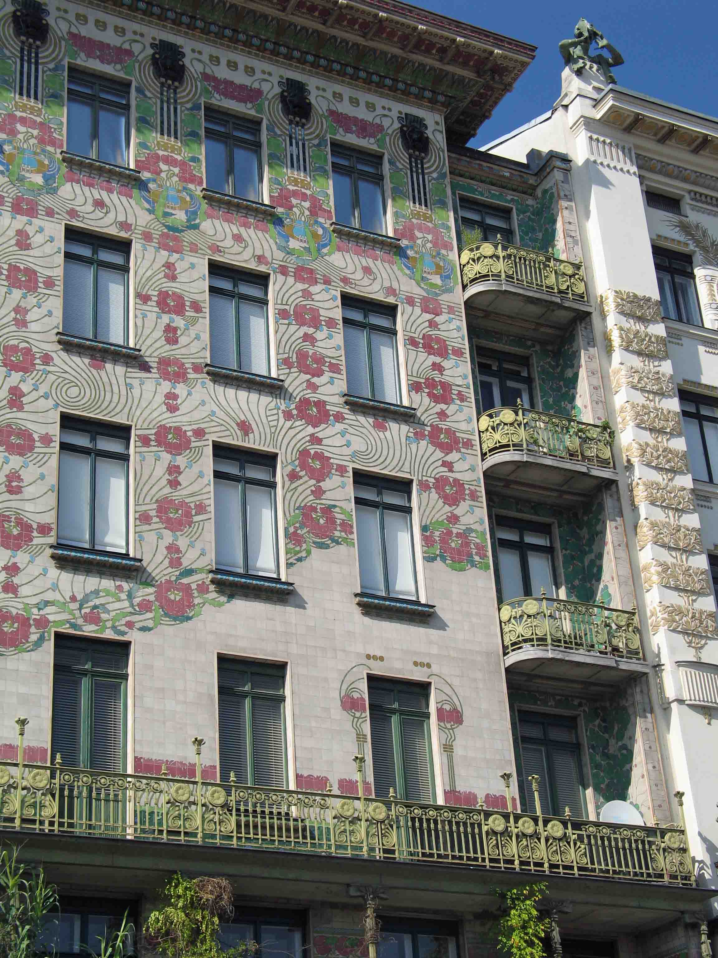 Ulici Weinzeile lemuje mnoho obytných secesních domů navržených prof. Otto Wagnerem, u kterého studovala i řada našich významných architektů. Wagner je považován za jednoho ze zakladatelů moderní architektury a stal se i významným vídeňským urbanistou. Míjeli jsme jeho MajolikaHaus a sousedící dům s bohatou štukovou výzdobou.